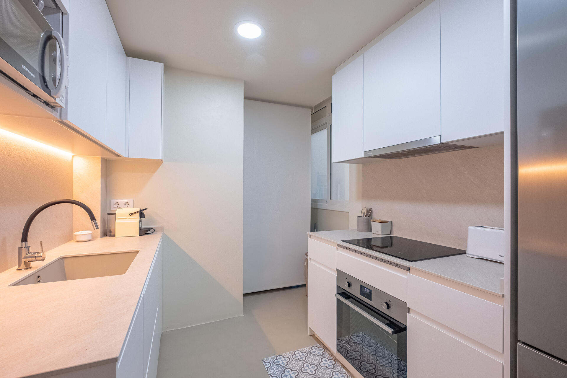L'appartement comprend un salon-salle à manger lumineux avec accès à une agréable terrasse, une cuisine séparée entièrement équipée et rénovée, deux chambres doubles et deux salles de bain complètes.